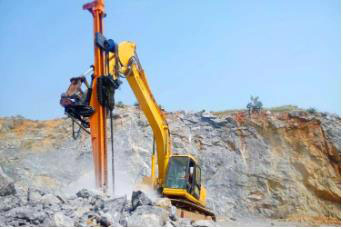 全液壓挖改鉆系列:其安裝于挖掘機上,主要用于各類石方工程爆破,該鉆機選配頂驅(qū)液壓鑿巖機進行高效鉆孔,實現(xiàn)了鉆孔自動化,性能穩(wěn)定,綜合成本低等特點,可選配的產(chǎn)品有T1、T2、T6。